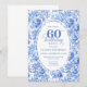 Invitation Modern Blue Toile Roses 60th Birthday Invite Digit
