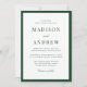 Set a refined and classic tone for your wedding with this dark green photo wedding invitation, featuring a rich green border and a sophisticated blend of serif lettering with calligraphy script accents. The couple’s names are presented in elegant serif type, while the script details add a soft, romantic contrast. The back of the invitation displays your vertical engagement photo framed by the same deep green border, creating a cohesive and polished look that feels timeless and well-suited for estate, formal, and nature-inspired celebrations.