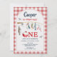 Invitation Modern Red Gingham Ofishally One 1st Birthday