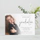 Script moderne 6 Photo Overlay Graduation Party. La graduation est dans un style manuscrit défini. Personnalisez facilement le reste du texte à vos propres détails et remplacez les six exemples de photos à l'avant et à l'arrière par les vôtres.