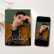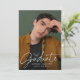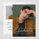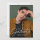 Fêtez la réussite de votre diplômé dans le style avec cette invitation moderne et minimaliste à la remise des diplômes. Le design comprend votre photo verticale senior avec "Graduate" élégamment affichée dans une superposition manuscrite blanche, créant un look élégant et sophistiqué. Personnalisez le front avec votre nom, votre école et votre année de graduation pour une touche unique. Le dos présente une photo horizontale avec tous les détails de votre fête de remise de diplômes affichés ci-dessous. Parfait pour les diplômés du secondaire et du collège, cette invitation simple mais élégante est une façon intemporelle pour les amis invitations et la famille de célébrer votre grand jour.