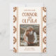 A modern western wedding Save the Date featuring warm neutral tones and bold southwest-inspired patterns. Perfect for ranch, desert, or outdoor weddings with a semi-formal western feel. Available as professionally printed invitations or a convenient digital file for easy sharing.