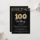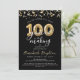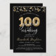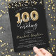 Invitation de 100e anniversaire moderne et festive avec le titre Vous êtes invité à une fête 100 ANS DANS LA FABRICATION en calligraphie script typographie et faux numéros de ballons d'or métallique et des serpentins d'or et confettis et lumières blanches dans votre choix de couleur arrière - plan (montré en noir). ASSISTANCE : Pour obtenir de l'aide sur la modification ou la personnalisation de la conception, le changement de couleur, le transfert de la conception vers un autre produit ou si vous souhaitez coordonner des éléments, contactez le concepteur AVANT de commander par Zazzle Conversation ou par courriel makeitaboutyoustore@gmail.com.
