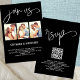 3 Photos Modernes Rejoignez-Nous Script Mariage Black. Joignez-vous à nous sur le devant et rsvp sur le dos sont dans un ensemble élégant script. Personnalisez facilement le reste du texte avec vos détails et remplacez simplement les exemples d'images par vos propres favoris. Entrez l'URL de votre code QR de site Web mariage pour remplacer l'exemple d'URL dans le modèle et votre code QR sera automatiquement généré et remplacez l'exemple de code au verso. Vous pouvez également supprimer le code et le texte au verso si vous le souhaitez. Vous pouvez également modifier le texte et les couleurs arrière - plans si vous le souhaitez via l'option Modifier plus loin.