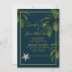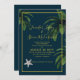 Invitation Moderne Beach Marine Blue Gold Palm Tree Mariage