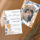 Cette invitation de mariage moderne boho est parfaite pour la mariée qui souhaite un mélange de design botanique campagnard et d'élégance moderne. Les fleurs sauvages dessinées à la main dans des couleurs terracotta orange brûlé et bleu marine, ainsi que la police de caractères script moderne, lui donnent un look féminin et sophistiqué. La police de caractères script moderne fait une belle combinaison avec les florales. Inclut une photo sur le verso avec un beau cadre