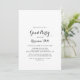 Cette grande invitation à la fête de calligraphie moderne est parfaite pour une fête rustique. Le design sobre et élégant présente une typographie de script classique et sophistiquée en noir et blanc.