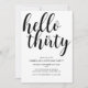 Célébrez votre 30e anniversaire avec style avec cette invitation de fête d'anniversaire moderne. Avec un arrière - plan blanc, la typographie de script noir dit "Bonjour trente". En dessous, dans la typographie noire moderne, vous pouvez facilement customiser avec vos détails.