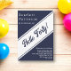 Cette élégante invitation d'anniversaire bleu marine et blanc est parfaite pour un anniversaire moderne. le design simple comprend une élégante calligraphie blanche sur un arrière - plan bleu marine.