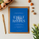 La faire-part de mariage est minimaliste, avec un arrière - plan bleu saphir et un agencement propre et symétrique. Il utilise d'élégantes polices serif, avec les noms du couple clairement affichés dans un grand texte qui se chevauchent pour une touche audacieuse et moderne. Les autres détails sont disposés dans une police plus petite et claire, tout en conservant simplicité et sophistication, mêlant esthétique contemporaine et traditionnelle.