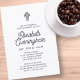Composé d'une écriture cursive et d'une typographie serif ; le tout sur un fond blanc. Une croix ornée décore subtilement la typographie. Ceci est une invitation funéraire ou mémorielle classique, simple, minimaliste et épurée.