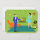Cette invitation moderne de couples de la moitié du siècle personnalisable ressemble à une scène hors d'une comédie romantique. Le style des années 1960, caractéristiques de conception minimalistes d'art un couple attrayant de bande dessinée appréciant égaliser romantique à la maison. La salle sophistiquée comporte en évidence un mur en pierre vert avec un feu d'hurlement dans la cheminée. L'ameublement dans la chambre inclut une orange, la chaise longue avec le tabouret assorti, un rouge, l'horloge murale de starburst, un jaune, l'appareil d'éclairage de spoutnik, et une table latérale orange, qui est à la maison à un vert, tourne-disque portatif. Sur le plancher près de la table d'extrémité, un disque vinyle peut être pousser vu hors d'une couverture kitschy d'album. Au centre du plancher vert, il y a une grande, rectangulaire, turquoise couverture. Au milieu de la scène, nous avons un couple très sophistiqué. Il y a un homme suave dans un costume de bleu royal, une chemise blanche et une cravate d'arc bleue. L'homme grand, sombre et bel regarde fixement son beau compagnon. L'élégant, femme d'une chevelure de corbeau porte une robe d'aqua de flouncy. Ils sont chaque participation par verre en cristal de martini avec une olive de flottement. À la votre ! Voici à égaliser parfait à la maison ! Le bord opposé de cette invitation a un arrière - plan de motif et une abondance en pierre verts de pièce pour personnaliser pour votre occasion spéciale.