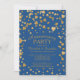 Notre invitation moderne contemporaine d'anniversaire d'étincelle de confettis est une belle et élégante manière d'inviter vos amis et famille à votre célébration d'anniversaire ! Nos coeurs élégants et chics de feuille d'or de faux de confettis de caractéristiques d'invitation d'anniversaire réglés sur un arrière - plan bleu chic classique. Perfectionnez pour une fête d'anniversaire d'hiver, de printemps, d'été ou de chute ! Customisez juste avec votre information et vous êtes tous placez pour aller ! Perfectionnez pour une fête d'anniversaire 5ème, 10ème, 25ème, 30ème, quarantième, cinquantième ou 60.