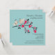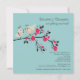 Commencez votre événement outre de la droite avec notre invitation nuptiale à la mode et moderne de douche comportant une paire mignonne d'oiseaux de jeune mariée et de marié dans l'amour se reposant sur une branche florale de chèvrefeuille réglée sur un arrière - plan bleu. Customisez juste notre invitation nuptiale de douche de beaux couples d'oiseau avec votre information de mariage et vous êtes tous placez pour aller.
