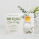 Stupéfiez vos invités avec cette invitation nuptiale moderne de douche comportant un pot blanc de thé et une tasse avec la typographie élégante sur un fond en bois blanc. Ajoutez simplement vos détails d'événement sur ce modèle facile à utiliser pour lui faire une invitation un-de-un-aimable.