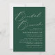 Faites une déclaration audacieuse à votre douche nuptiale avec nos invitations brune nuptiale, avec un élégant script de calligraphie blanche sur un arrière - plan émeraude émeraude. Ces invitations personnalisables vous permettent de personnaliser facilement avec le nom et les détails de l'événement de la future mariée, créant une touche unique pour votre célébration. Le riche vert émeraude associé à la calligraphie blanche et croustillante dégage élégance et charme, ce qui en fait le choix idéal pour un brunch de douche nuptiale chic et moderne. Créez une impression durable avec ces invitations de brunch pour la douche émeraude vert émeraude faciles à personnaliser !