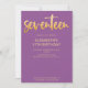 Introduisez une nouvelle invitation moderne et élégante à la fête du 17ème anniversaire avec arrière - plan violet avec texte de typographie manuscrit en or qui dit dix-sept". Customisez cette carte de modèle en ajoutant vos propres informations de fête.