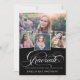 Une invitation moderne de graduation avec le mot "diplômé" sur le devant dans la calligraphie stylisée, plus 4 de vos photos senior préférées. Ajoutez vos propres détails de célébration personnelle à l'arrière. Voici la version en noir et blanc.