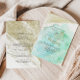 Ce faire-part de mariage moderne de calligraphie vert or à l'avant et à l'arrière est parfait pour un mariage rustique. Le design sobre et élégant présente une typographie de script classique et sophistiquée dans un arrière - plan doré et vert. Enregistrez du papier en incluant plus de détails au verso de l'invitation plutôt que sur une carte de boîtier séparée.