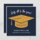 Faites de votre fête de troisième cycle une invitation à la fête de remise de diplômes moderne. Le design comporte une casquette de graduation en or audacieuse sur un arrière - plan bleu marine, qui peut être facilement customisé aux couleurs de votre école grâce aux outils Design. Mettez à jour le texte à l'avant et à l'arrière, ainsi que les polices et les couleurs. Aussi disponible en téléchargement.