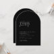 Police moderne, minimale, écriture manuscrite, noir & blanc, Faire-part de mariage Arch. Annoncez votre journée spéciale avec cette élégante et élégante faire-part de mariage blanche moderne. Doté d'un design épuré et minimaliste, axé sur la simplicité intemporelle, cette invitation utilise une combinaison de polices classiques et un script raffiné pour une touche subtile mais romantique. Parfait pour les couples à la recherche d'une esthétique sophistiquée et minimaliste, ce design met l'accent sur la clarté et l'élégance, permettant à vos détails mariages de prendre le centre de la scène. Personnalisez-le avec vos noms, dates et informations sur le lieu pour créer une invitation vraiment mémorable pour vos invités.