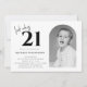 Faites de votre 21e légende avec notre Invitation d'anniversaire Black & White moderne! Préparez-vous à lancer votre 21e anniversaire dans un style élégant et moderne qui est aussi cool que vous. Ce n'est pas n'importe quelle carte - c'est le premier aperçu de la célébration épique qui attend ! Notre design noir et blanc crie de sophistication avec une pointe de plaisir. Les lignes épurées et l'approche minimaliste font ressortir les détails de votre fête, tandis que le modèle photo vous permet d'ajouter ce cliché parfait (ou parfaitement hilarant) du garçon d'anniversaire. Que ce soit votre selfie le plus dapper ou que votre enfance embarrassante pic vos amis l'amour, faites-en la star de votre invitation ! La personnalisation est la clé, et nous vous avons couvert : Date et heure : Faites savoir à tout le monde quand la fête commence (et quand elle pourrait se terminer... si jamais !) Lieu : Pointez vos invités là où la magie se produit RSVP Détails : Assurez-vous de savoir qui vient célébrer votre grand jour Ne vous contentez pas d'ennuyer quand vous pouvez avoir de l'audace. Cette invitation donne le ton d'une nuit inoubliable, qui correspond à l'étape du 21ème anniversaire. Prêt à faire votre marque ? Cliquez sur "Customiser maintenant" et commençons cette fête !