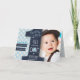 Cartons d'invitation modernes points bleus clair & noirs un an