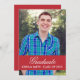 Faire-part moderne simple carte photo de graduation et invitation avec un groupe rouge à l'avant. Personnalisez le faire-part de graduation avec votre photo, nom et détails de graduation sur le dos. Pour modifier les couleurs de police et de police, cliquez sur le bouton "Customiser" sous l'image du produit. Vous pouvez également modifier la couleur de l'arrière - plan au verso de l'invitation.