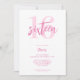 Une simple invitation moderne de 16ème anniversaire avec une élégante typographie de script de calligraphie et un design minimaliste en rose et blanc.