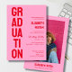 Invitation Moderne rose & rouge audacieux graduation de polic