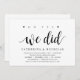 Carte d'invitation thème Moderne Rustique, écriture noire (avec titre de carte : oh oui, nous l'avons fait). Elle est parfaite pour votre réception de mariage en fuite / fête de célébration post-mariage. Ajoutez vos détails dans la même police / lettrage noir. #TeeshaDerrick