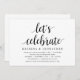 Moderne Rustique, Carte d'invitation à thème Script Noir (avec titre de carte : célébrons). C'est parfait pour votre réception de mariage en fuite / fête de célébration après le mariage. Ajoutez vos détails dans une police / lettrage noir assorti.