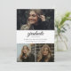 Modern Classic Simple Three Photo Graduation Invitation présente une typographie minimale et trois photos sur le devant, ainsi qu'un texte d'invitation de graduation optionnel sur le dos.