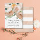 Invitation à la douche nuptiale avec design floral simple et moderne. En utilisant de magnifiques teintes de rose rousse, de corail et des touches de pêche et d'orange, l'oeuvre a été peinte à la main par Audrey Jeanne Roberts, artiste et designer de renommée internationale. Des roses sauvages se bousculent avec des roses anglais d'époque et des Anémones avec leur punch de noir au centre. Une mise en page de texte contemporaine fait de cet invitation un véritable trait distinctif. Au verso se trouve un motif large bande peint à la main, dans les mêmes tons de palette de couleurs. Droit d'auteur .
