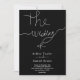 Cette élégante faire-part de mariage en noir et blanc est parfaite pour un mariage moderne. le design simple présente une élégante calligraphie blanche sur un arrière - plan noir.