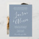 Modern Simple Script Calligraphy Photo Faire-part de mariage - présente les noms de la mariée et de la chambre, grand et audacieux dans la typographie de script moderne. Au fond de l'invitation se trouve une belle photo de la mariée et du marié. L'invitation fera partie d'une suite mariage et sera disponible en différentes couleurs. Vous pouvez facilement changer la couleur arrière - plan pour correspondre à votre thème mariage. Montré en bleu poussiéreux. Conçu par Beverly Bainbridge Homespun Cottage Designs E : homespuncottagedesigns@gmail.com