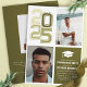 Célébrez votre diplômé avec style grâce à cette invitation moderne à thème varié. Doté d'un lettrage "2025" audacieux, d'une palette de couleurs Moss Green et blanche et d'un espace pour les photos personnelles, ce design reflète parfaitement l'esprit de l'occasion. Idéal pour les fêtes de fin d'études secondaires ou collégiales, il allie sophistication et esprit sportif. Personnalisez-le avec vos détails pour une fête mémorable.