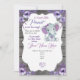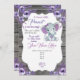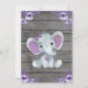 Invitation à thème éléphant fille mignonne aquarelle pour Baby Shower, Anniversaire en violet, thème floral rustique. Tous les champs sont modifiables.