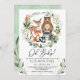 Invitation de baby shower en bois de Whimsical avec l'adorable aquarelle illustration de cinq amis forestiers et douce verdure botanique