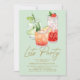 Invitations de fête d'anniversaire pour adultes avec des illustrations d'aquarelle de cocktails colorés et le texte du script "Let's Party". Le texte de l'anniversaire peut être modifié pour n'importe quel événement d'été ou cocktail. Police couleur or sur un arrière - plan vert pastel.