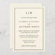 Faire-part de mariage en ivoire crème simple avec un design moderne mais élégant avec votre monogramme à deux lettres en haut et vos détails entourés d'une fine bordure. Les polices et les couleurs arrière - plans peuvent être changées en n'importe quelle couleur en cliquant sur le bouton "personnaliser". Un design chic et design qui conviendra à un couple minimaliste.
