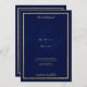 Un chic élégant or élégant et bleu marine monogramme initie des invitations de mariage minimalistes à thème élégant.