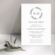 Monogramme de couronne de feuille blanche et noire à un jour de la carte Faire-part de mariage. Célébrez votre journée spéciale avec cette belle et élégante carte de faire-part de mariage pour embellir votre occasion spéciale. Tous les textes sont pré-arrangés pour que vous personnalisiez facilement et rapidement avec vos propres détails.