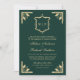 Invitation Monogramme de crête d'or QR Code Emerald Mariage v