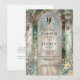 Faire invitation de mariage à monogramme élégant avec une belle scène romantique et ornée de porte de jardin à l'aquarelle présentant les détails de votre mariage avec des mosaïques et des fleurs dans des tons doux, chauds et terreux (teintes vertes, pêche, terre cuite, rose et rouille). Dos avec un blason à monogramme de style baroque délicat avec les initiales du couple et la possibilité d'ajouter plus de détails, idéal pour le site web, la tenue ou les instructions de RSVP, ou vous pouvez laisser la section de texte vide et compléter l'invitation avec nos cartes d'insertion coordonnées. Raffinez le design où la sophistication classique rencontre le charme moderne. Le design dégage une élégance intemporelle, complétée par une formulation élégante dans un mélange de typographie classique et de calligraphie manuscrite délicate. Fait partie de notre collection "Élégance Intemporelle Verte", cette invitation se marie parfaitement avec les éléments de la suite et la papeterie de l'événement. Romantique, élégant et unique. Ce