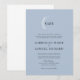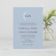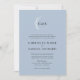 Cette élégante invitation de mariage offre un design minimal accentué avec un graphique d'une feuille blanche et monogramme sur un élégant arrière - plan bleu clair poussiéreux. La couronne est affichée en blanc, bien qu'elle puisse être changée en n'importe quelle autre couleur.