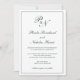 Style traditionnel All In One Faire-part de mariage avec un design simple et classique avec vos deux monogrammes initiaux et vos noms dans une calligraphie élégante à l'intérieur d'une mince bordure. Le dos contient vos coordonnées d'invités, ce qui élimine la nécessité d'une carte d'enceinte séparée. Tous les éléments de conception sont en vert de forêt sur un arrière - plan blanc et peuvent être changés dans l'outil d'édition de conception. Ces élégantes invitations de mariage All In One sont parfaites pour un mariage formel.