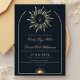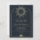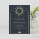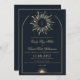 Ce design présente des oeuvres d'art céleste bleu marine et doré, dont le logo du soleil ondulé linéaire bohème et la faire-part de mariage personnalisée à l'arche. Ce produit peut être facilement personnalisé. Si vous avez besoin d'aide pour la personnalisation du produit ou si vous avez besoin de produits correspondants, veuillez me contacter via Zazzle.