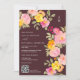 Célébrez votre mariage avec notre charmant code Qr Floral Mariage et la photo Invitation. Cette invitation magnifiquement conçue présente un délicieux éventail de fleurs peintes à la main dans des tons vifs de rose, d'orange et de jaune, accentués par le feuillage vert luxuriant. L'élégante bordure florale encadre parfaitement le texte, créant un look harmonieux et romantique. Un monogramme moderne dans le coin supérieur ajoute une touche personnelle, et un code QR moderne en bas à droite assure des options RSVP pratiques sur un arrière - plan en acajou rustique foncé modifiable. De plus, il y a un modèle photo personnalisable à l'arrière, vous permettant d'ajouter une photo chère du couple, rendant cette invitation non seulement belle mais aussi personnelle et mémorable.