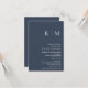 Élevez votre expérience mariage avec notre Faire-part de mariage moderne bleu et blanc, avec des polices contemporaines et un monogramme qui symbolise magnifiquement votre amour éternel. Conçu à partir de cartons luxueux de qualité supérieure et au design épuré, cette invitation est entièrement personnalisable, vous permettant de l'insuffler avec vos détails personnels. Faites de votre voyage mariage un voyage inoubliable, du début à la grande finale. Découvrez notre collection pour découvrir plus de produits parfaitement adaptés à un Mariage à thème bleu et blanc !